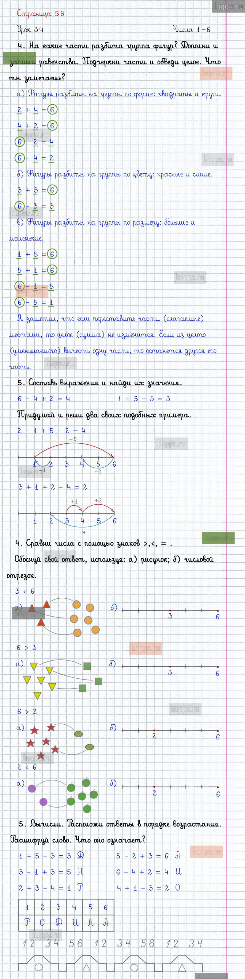 Подробные ответы к заданиям на 59 странице 1 части учебника по математике автора Л.Г. Петерсон для учащихся 1 класса. Урок 35. Точки и линии.