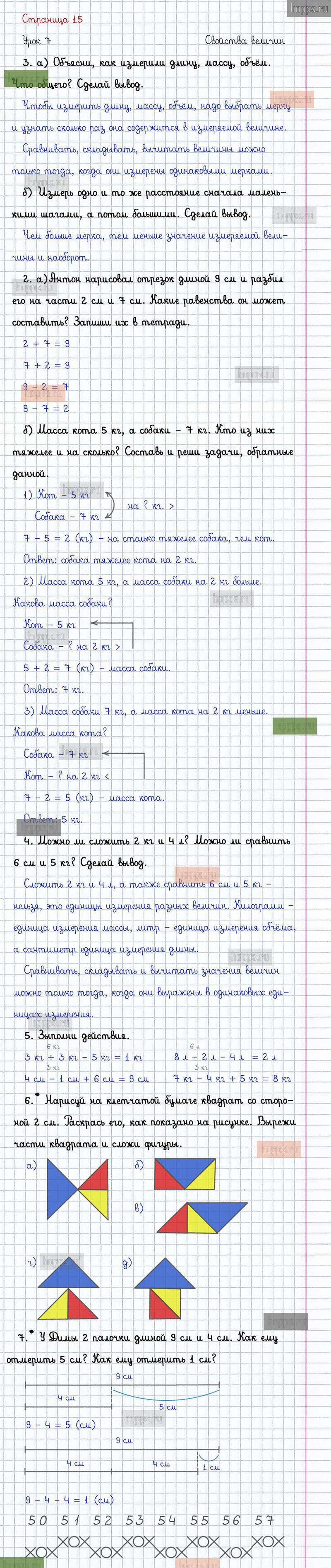 Подробные ответы к заданиям на 15 странице 3 части учебника по математике автора Л.Г. Петерсон для учащихся 1 класса. Урок 7. Свойства величин.
