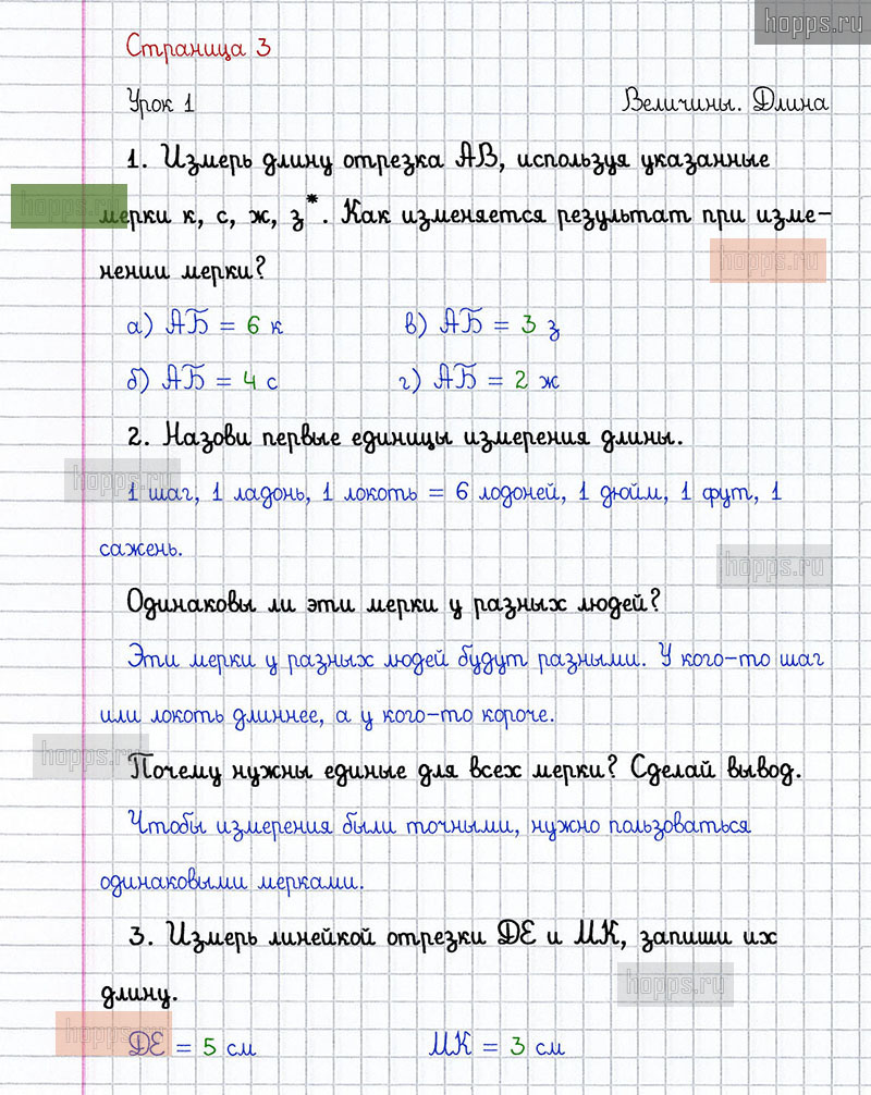 Подробные ответы к заданиям на 3 странице 3 части учебника по математике автора Л.Г. Петерсон для учащихся 1 класса. Урок 1. Величины. Длина.