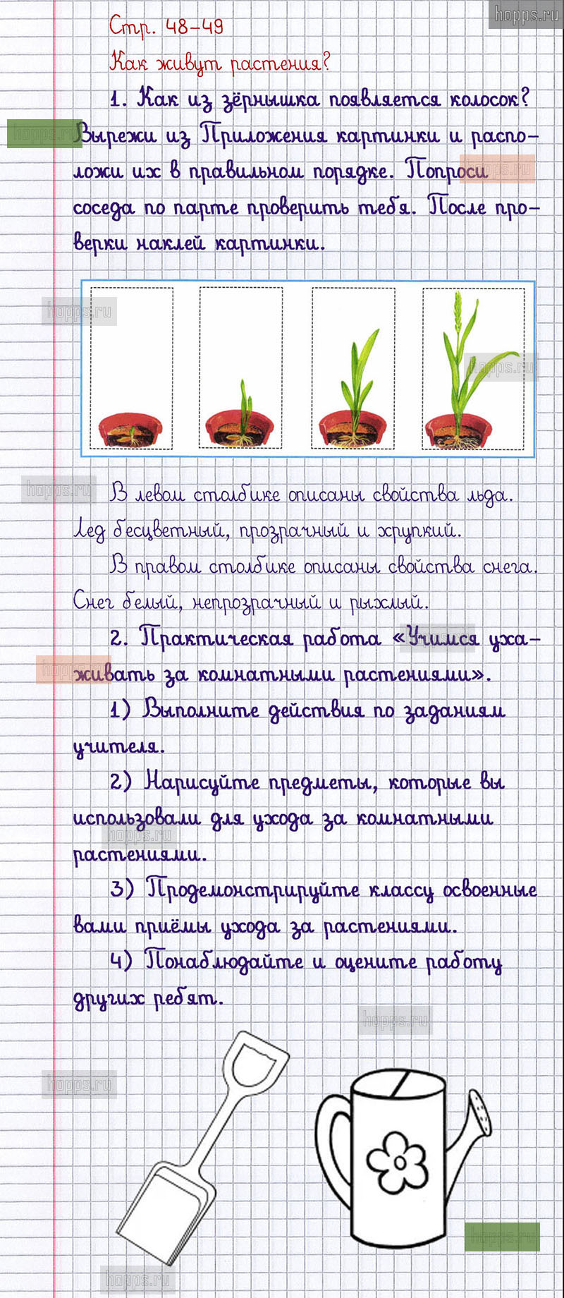 Подробные ответы к заданиям, расположенным на 48-49 странице 1 части рабочей тетради 2013 года по окружающему миру автора Плешаков А.А. для учащихся 1 класса.