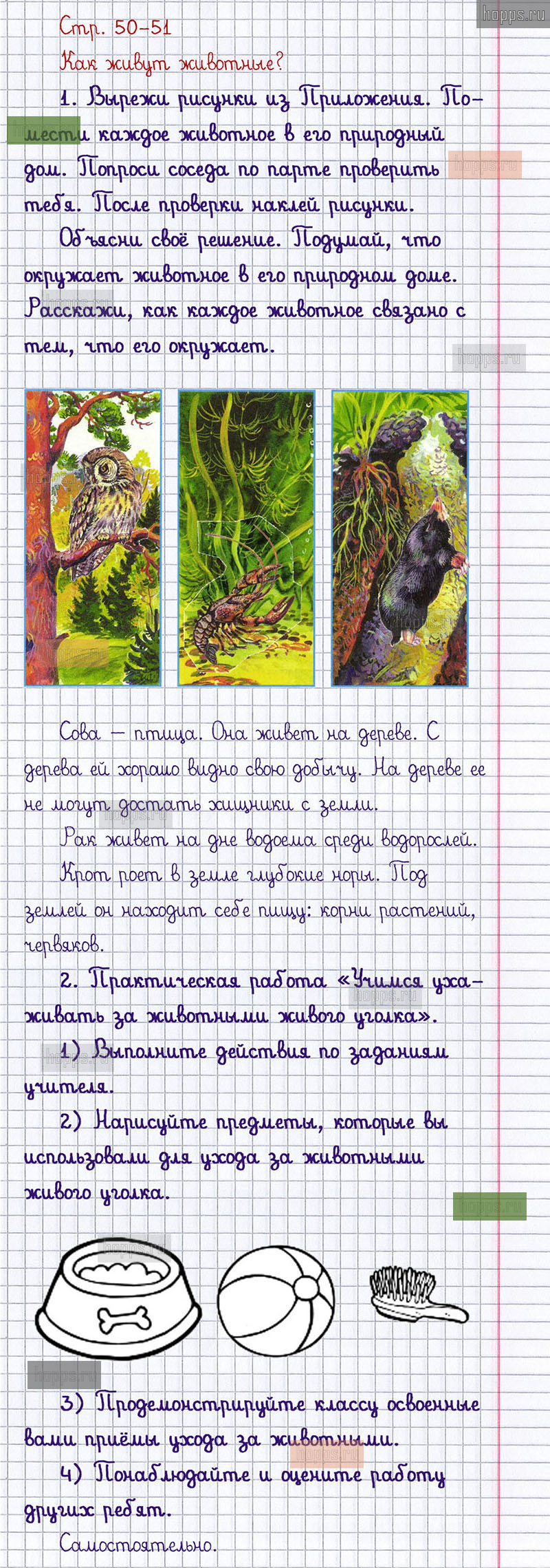 Подробные ответы к заданиям, расположенным на 50-51 странице 1 части рабочей тетради 2013 года по окружающему миру автора Плешаков А.А. для учащихся 1 класса.