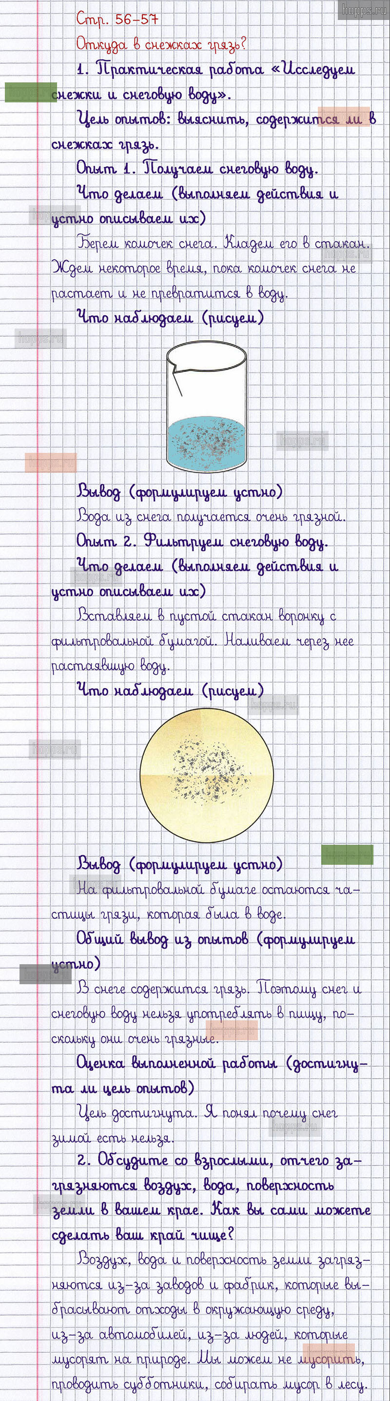 Подробные ответы к заданиям, расположенным на 56-57 странице 1 части рабочей тетради 2013 года по окружающему миру автора Плешаков А.А. для учащихся 1 класса.