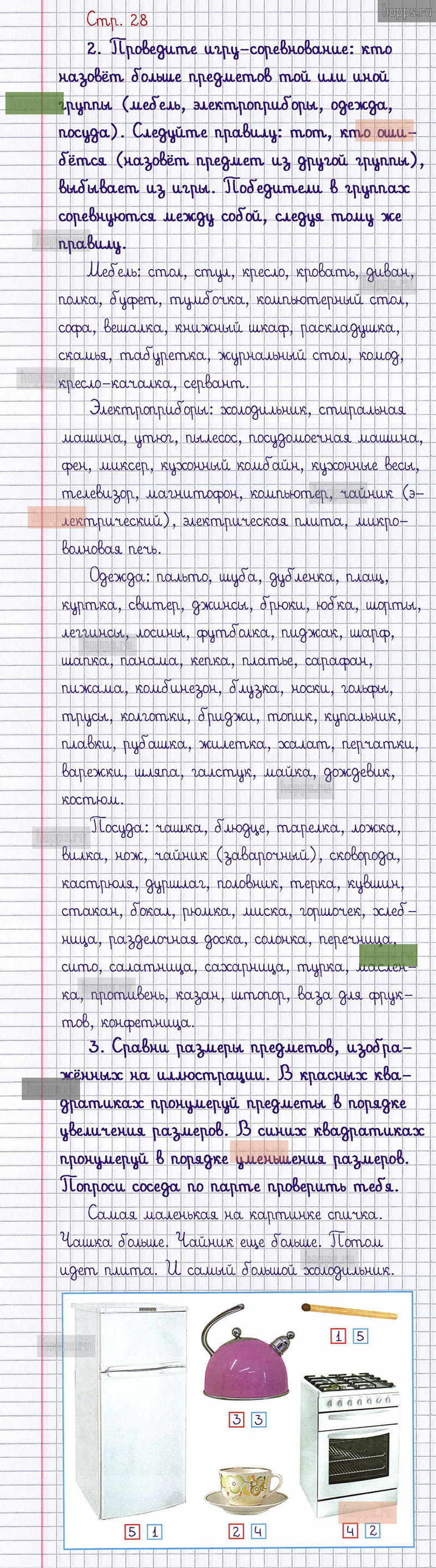 Подробные ответы к заданиям, расположенным на 28 странице 1 части рабочей тетради 2019 года по окружающему миру автора Плешаков А.А. для учащихся 1 класса.