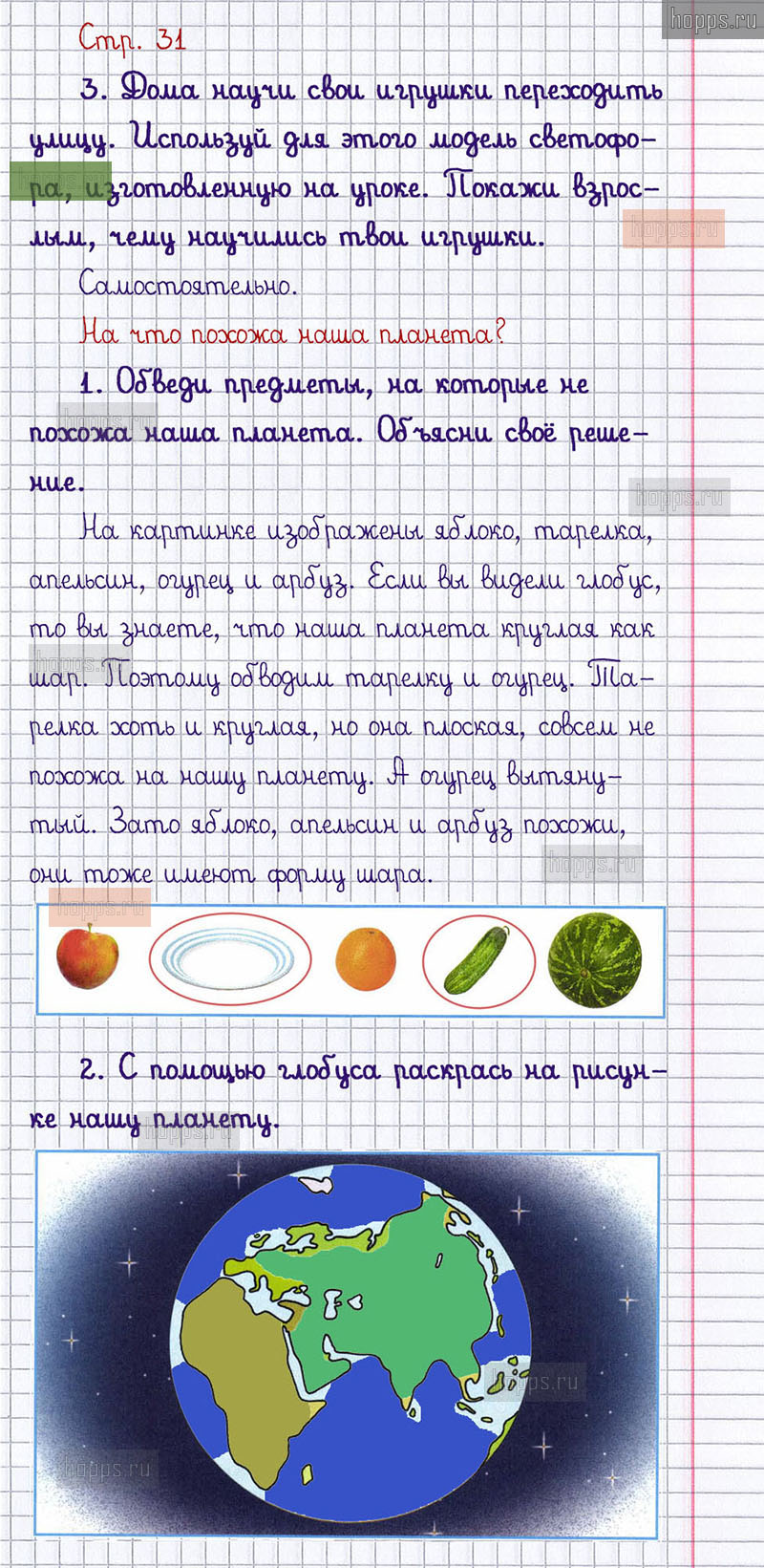 Подробные ответы к заданиям, расположенным на 31 странице 1 части рабочей тетради 2019 года по окружающему миру автора Плешаков А.А. для учащихся 1 класса.