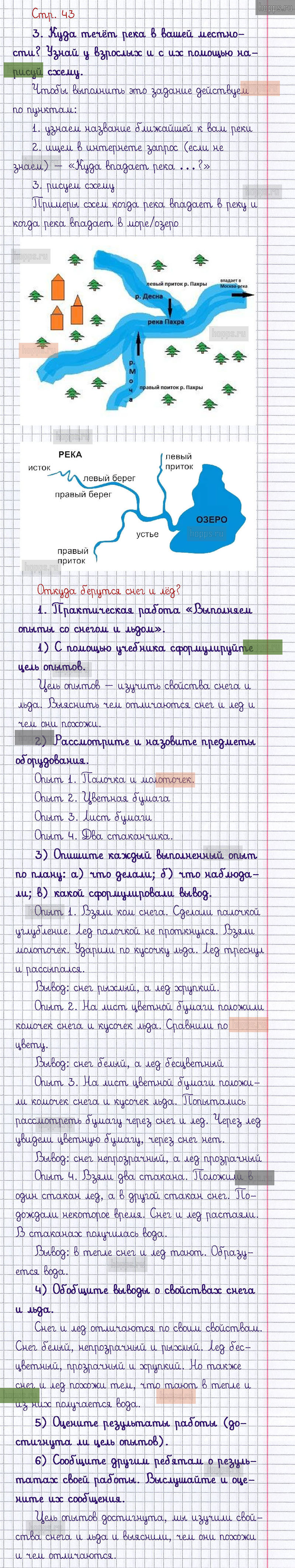 Подробные ответы к заданиям, расположенным на 43 странице 1 части рабочей тетради 2019 года по окружающему миру автора Плешаков А.А. для учащихся 1 класса.
