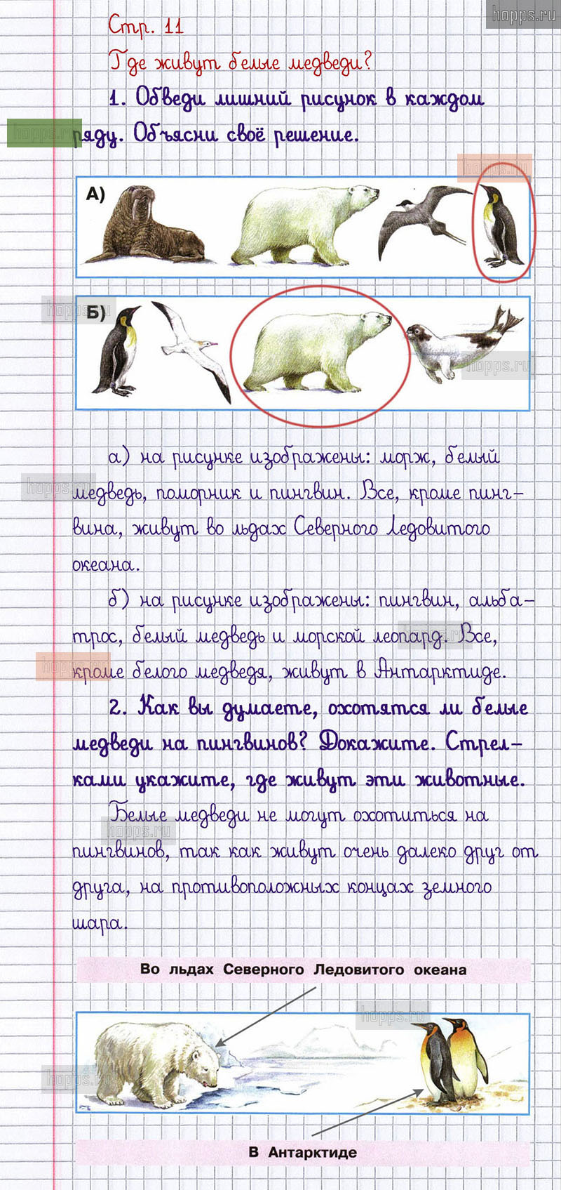 Подробные ответы к заданиям, расположенным на 11 странице 2 части рабочей тетради 2013 года по окружающему миру автора Плешаков А.А. для учащихся 1 класса.