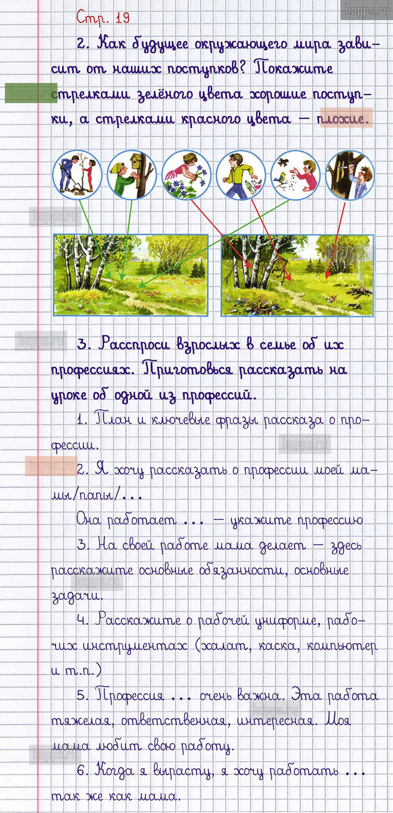 Подробные ответы к заданиям, расположенным на 19 странице 2 части рабочей тетради 2013 года по окружающему миру автора Плешаков А.А. для учащихся 1 класса.