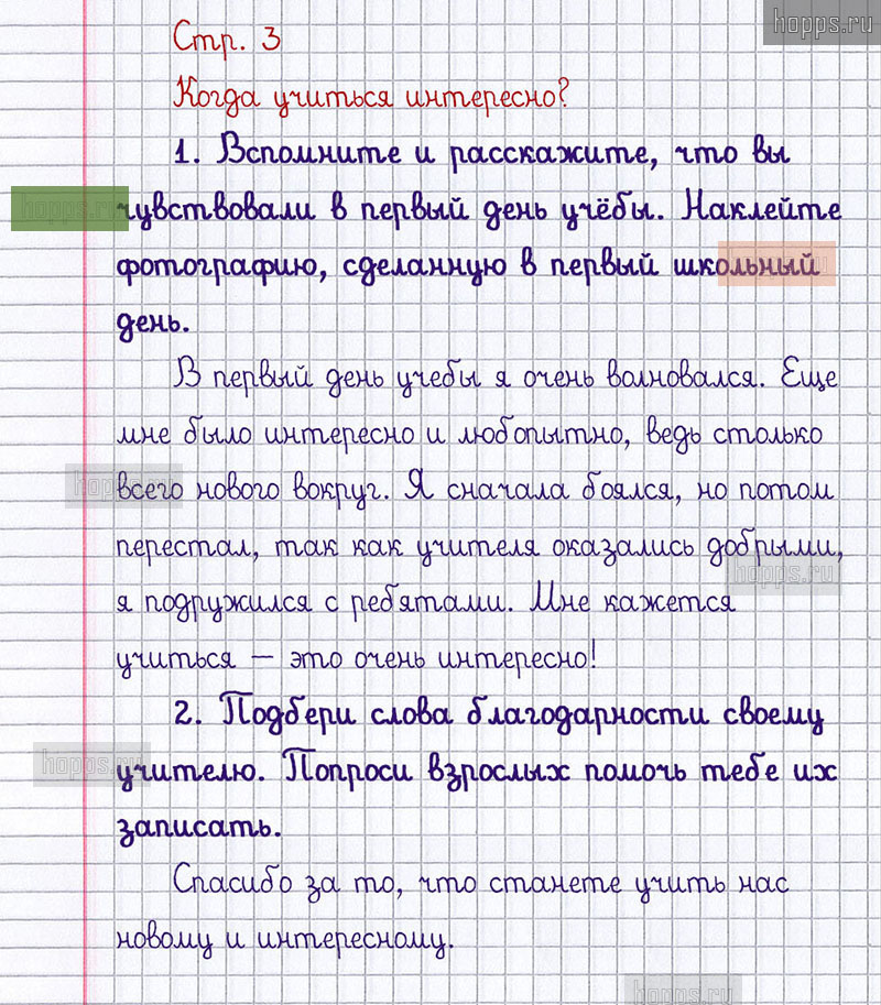 ГДЗ к 3 странице рабочей тетради 2019 года по окружающему миру А.А. Плешаков за 1 класс 2 часть | Источник: Hopps.ru