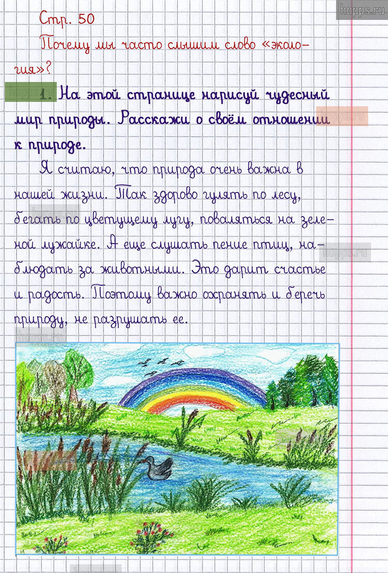 Подробные ответы к заданиям, расположенным на 50 странице 2 части рабочей тетради 2019 года по окружающему миру автора Плешаков А.А. для учащихся 1 класса.