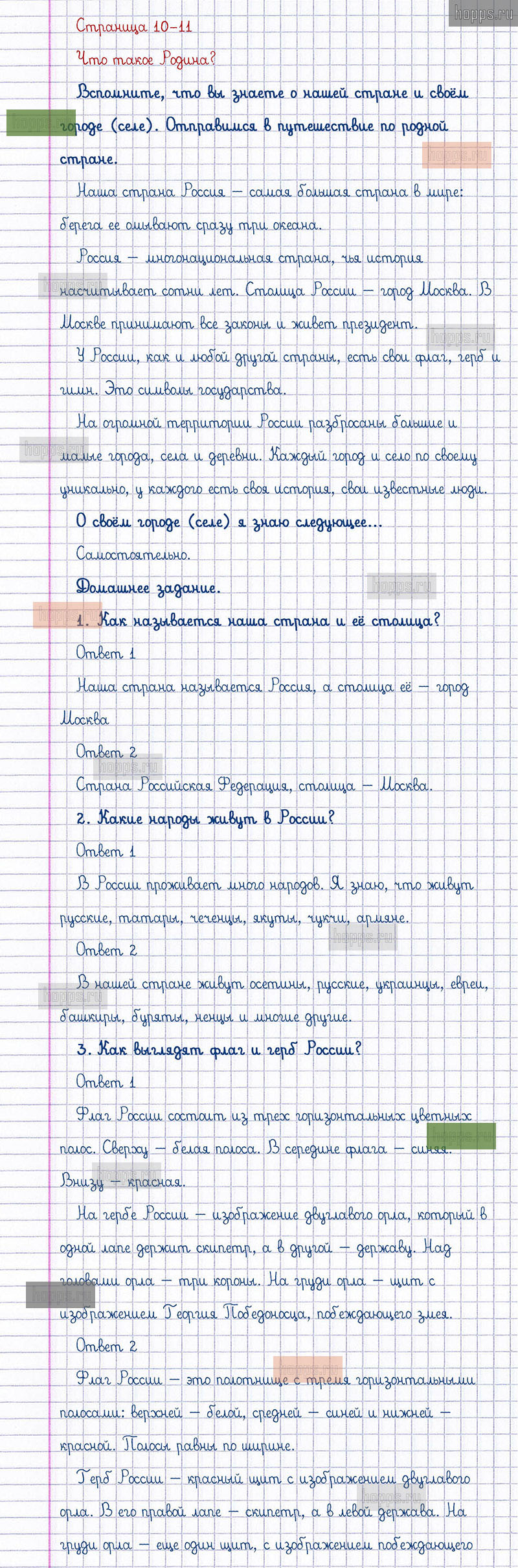 Подробные ответы к заданиям, расположенным на 10-11 странице 1 части учебника по окружающему миру автора Плешаков А.А. для учащихся 1 класса. Что такое Родина?