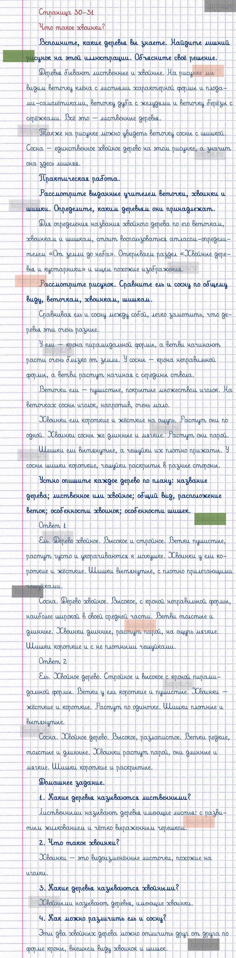 Подробные ответы к заданиям, расположенным на 30-31 странице 1 части учебника по окружающему миру автора Плешаков А.А. для учащихся 1 класса. Что такое хвоинки?
