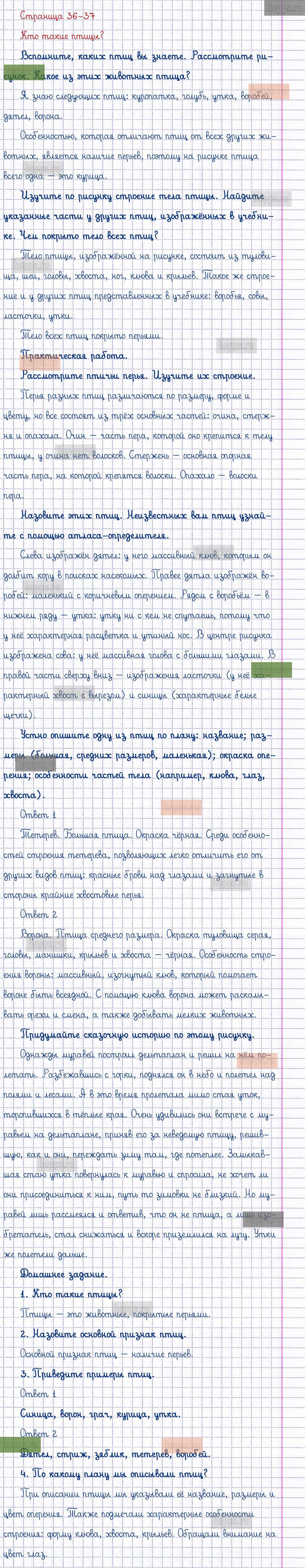 Подробные ответы к заданиям, расположенным на 36-37 странице 1 части учебника по окружающему миру автора Плешаков А.А. для учащихся 1 класса. Кто такие птицы?