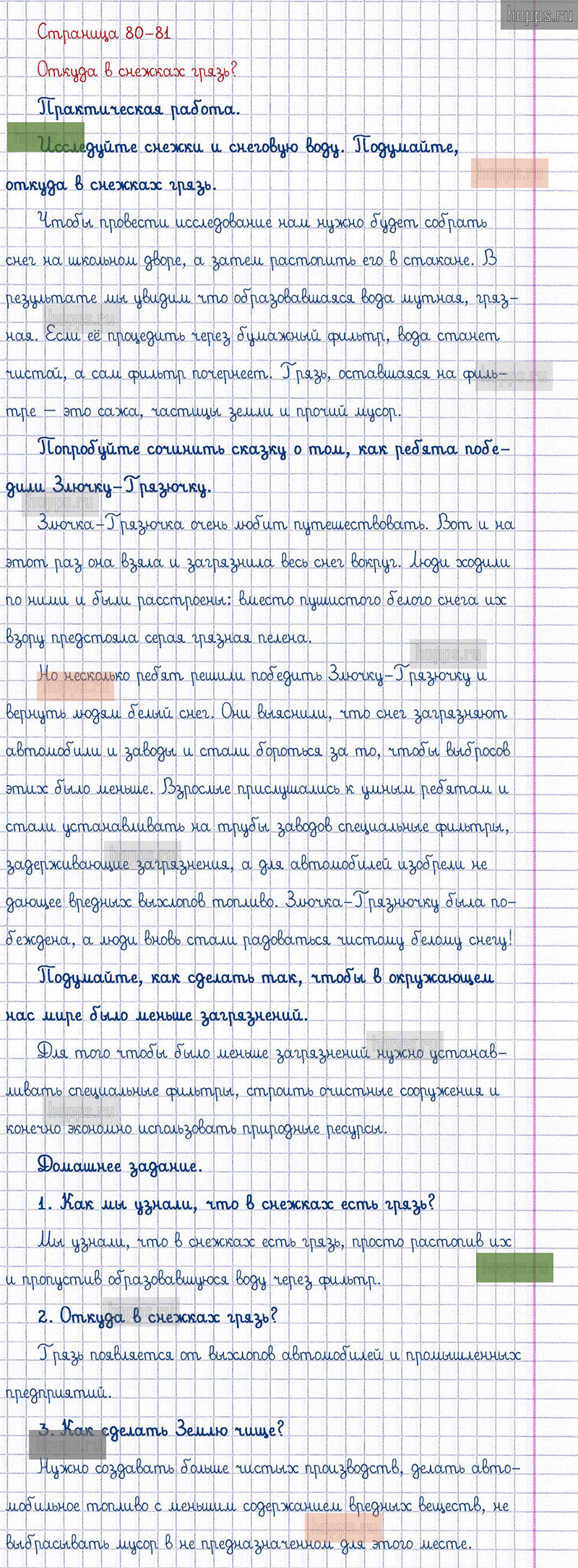 Подробные ответы к заданиям, расположенным на 80-81 странице 1 части учебника по окружающему миру автора Плешаков А.А. для учащихся 1 класса. Откуда в снежках грязь?