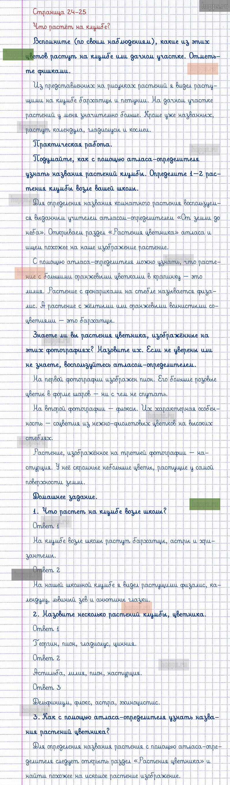 Подробные ответы к заданиям, расположенным на 24-25 странице 1 части учебника по окружающему миру автора Плешаков А.А. для учащихся 1 класса. Что растёт на клумбе?