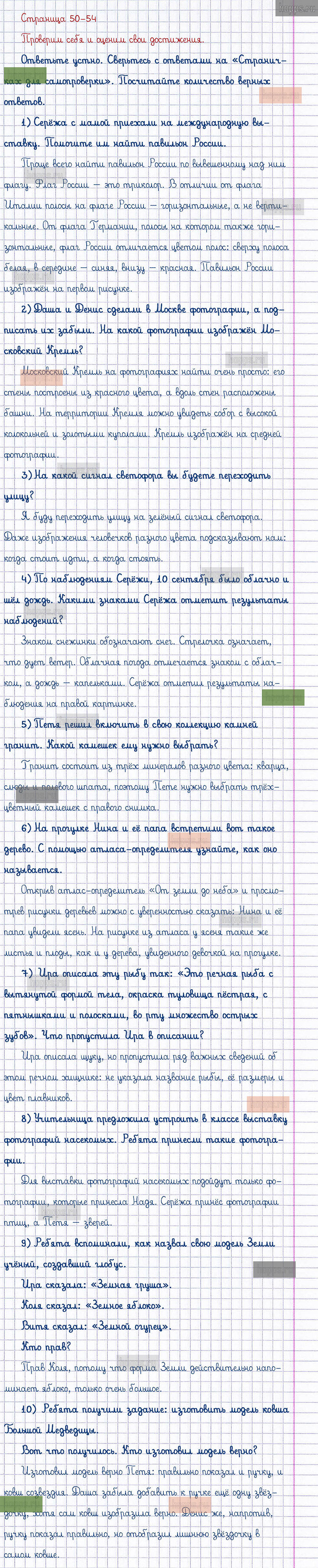 Подробные ответы к заданиям, расположенным на 50-54 странице 1 части учебника по окружающему миру автора Плешаков А.А. для учащихся 1 класса. Проверим себя и оценим свои достижения.