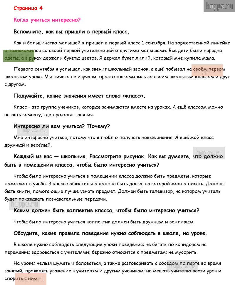 Ответы к вопросам и заданиям на 4 странице учебника по окружающему миру А.А. Плешаков за 1 класс 2 часть | Источник: Hopps.ru