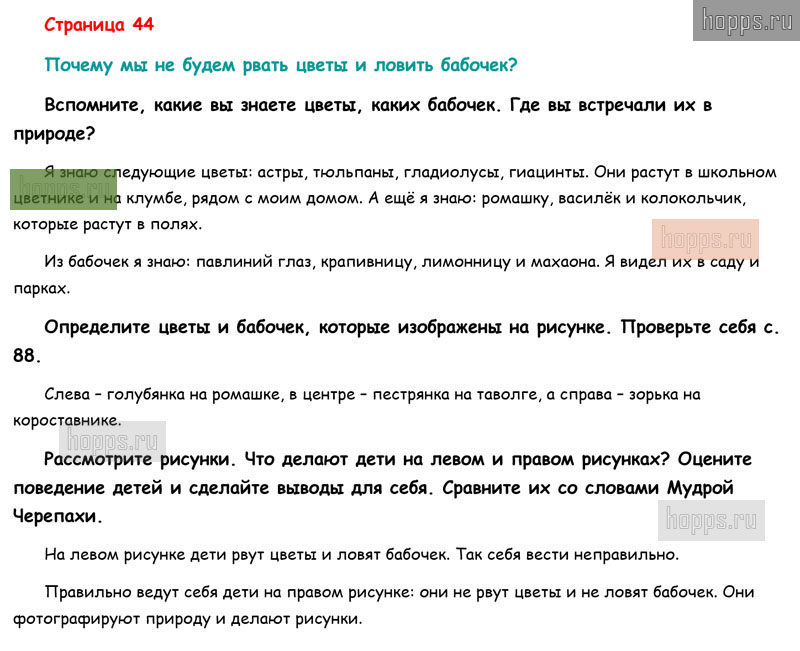 Готовые ответы к вопросам и заданиям на 44 странице 2 части учебника по окружающему миру для учащихся 1 класса, автора Плешаков А.А, Перспектива, 2019 г.
