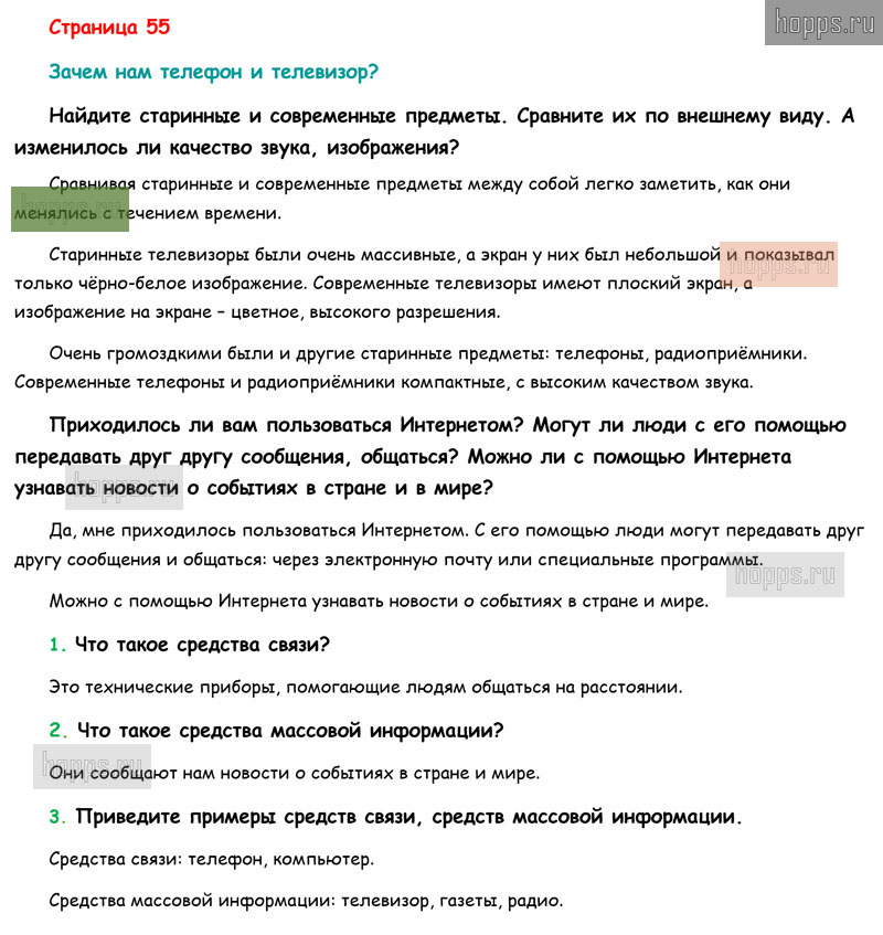 Готовые ответы к вопросам и заданиям на 55 странице 2 части учебника по окружающему миру для учащихся 1 класса, автора Плешаков А.А, Перспектива, 2019 г.