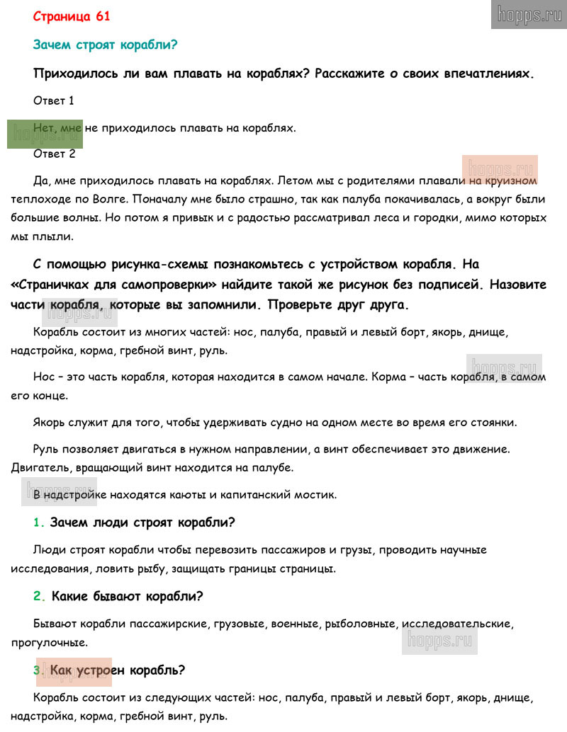 Готовые ответы к вопросам и заданиям на 61 странице 2 части учебника по окружающему миру для учащихся 1 класса, автора Плешаков А.А, Перспектива, 2019 г.