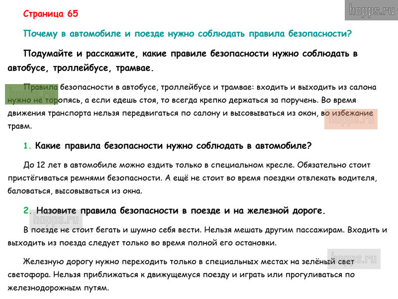 Готовые ответы к вопросам и заданиям на 65 странице 2 части учебника по окружающему миру для учащихся 1 класса, автора Плешаков А.А, Перспектива, 2019 г.