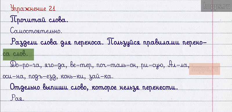 Подробные ответы к 21 заданию учебника по русскому языку авторов Р.Н. Бунеев, Е.В. Бунеева, О.В. Пронина для учащихся 1 класса. §2. Повторяем слоги и ударение.