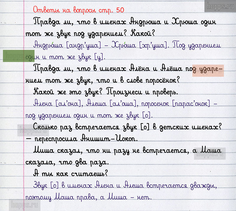 Подробные ответы к вопросам и заданиям на 50 странице учебника по русскому языку автора Н.А. Чуракова для учащихся 1 класса.