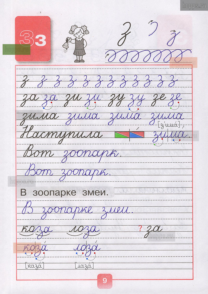 Подробные ответы к заданиям, расположенным на 9 странице 3 части прописей авторов В.Г. Горецкий, Н.А. Федосова для учащихся 1 класса.