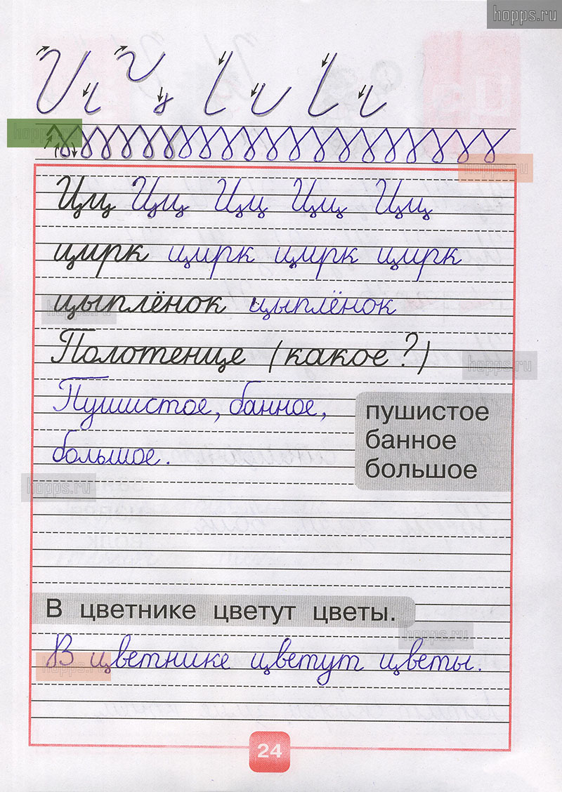 Подробные ответы к заданиям, расположенным на 24 странице 4 части прописей авторов В.Г. Горецкий, Н.А. Федосова для учащихся 1 класса.