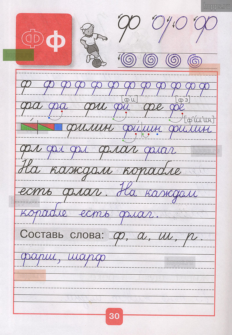 Подробные ответы к заданиям, расположенным на 30 странице 4 части прописей авторов В.Г. Горецкий, Н.А. Федосова для учащихся 1 класса.