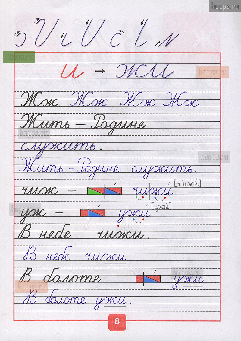 Подробные ответы к заданиям, расположенным на 8 странице 4 части прописей авторов В.Г. Горецкий, Н.А. Федосова для учащихся 1 класса.