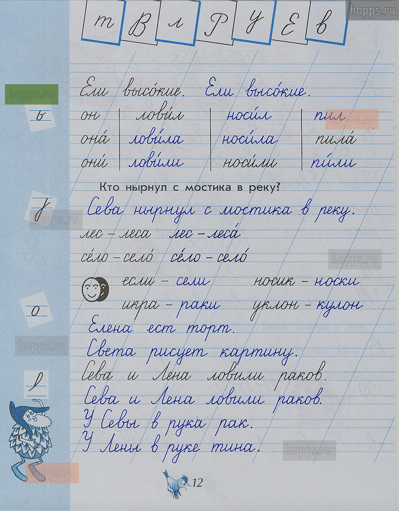Подробные ответы к заданиям на 12 странице 2 части чудо-прописей автора В.А. Илюхина для учащихся 1 класса.