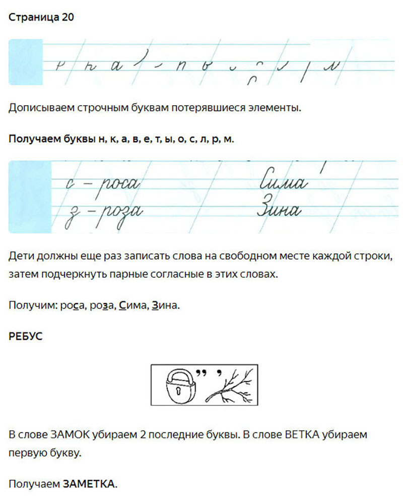 Подробные ответы к заданиям на 20 странице 2 части чудо-прописей автора В.А. Илюхина для учащихся 1 класса.