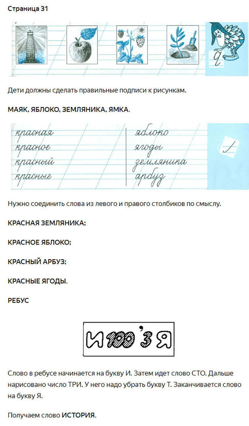 Подробные ответы к заданиям на 31 странице 2 части чудо-прописей автора В.А. Илюхина для учащихся 1 класса.