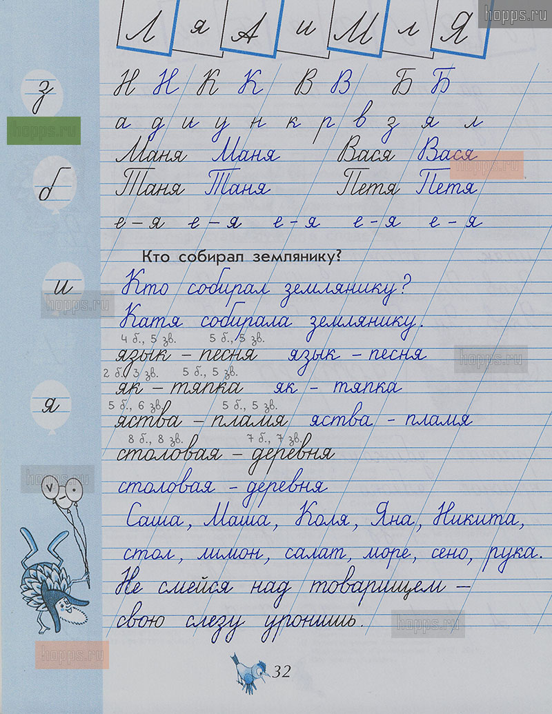 Подробные ответы к заданиям на 32 странице 2 части чудо-прописей автора В.А. Илюхина для учащихся 1 класса.