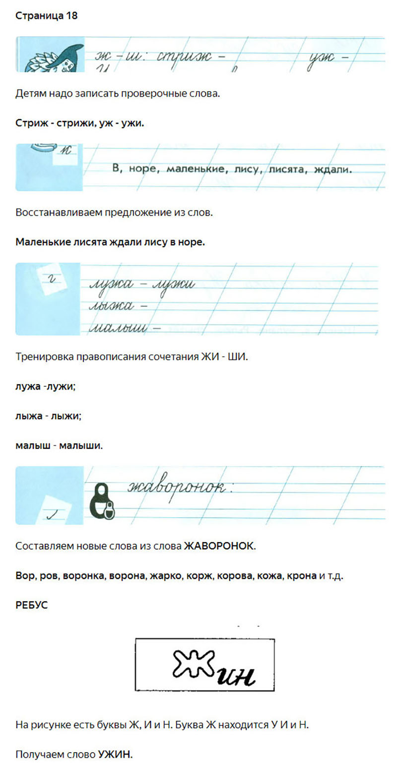 Подробные ответы к заданиям на 18 странице 3 части чудо-прописей автора В.А. Илюхина для учащихся 1 класса.