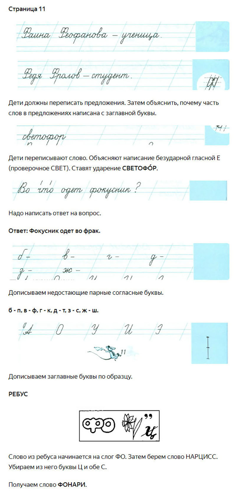 Подробные ответы к заданиям на 11 странице 4 части чудо-прописей автора В.А. Илюхина для учащихся 1 класса.