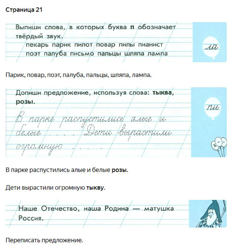 Подробные ответы к заданиям на 21 странице 4 части чудо-прописей автора В.А. Илюхина для учащихся 1 класса.