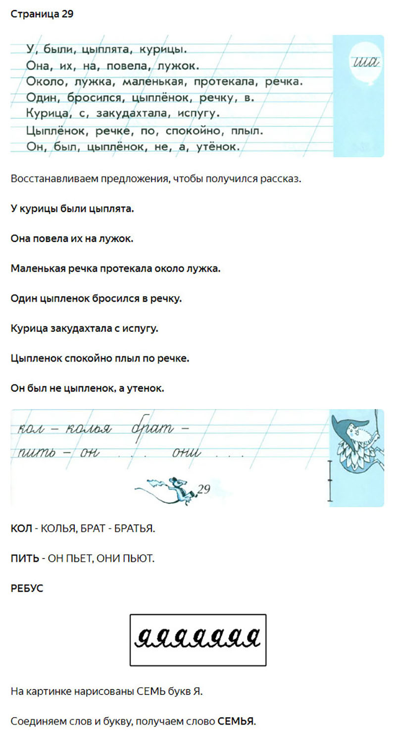 Подробные ответы к заданиям на 29 странице 4 части чудо-прописей автора В.А. Илюхина для учащихся 1 класса.