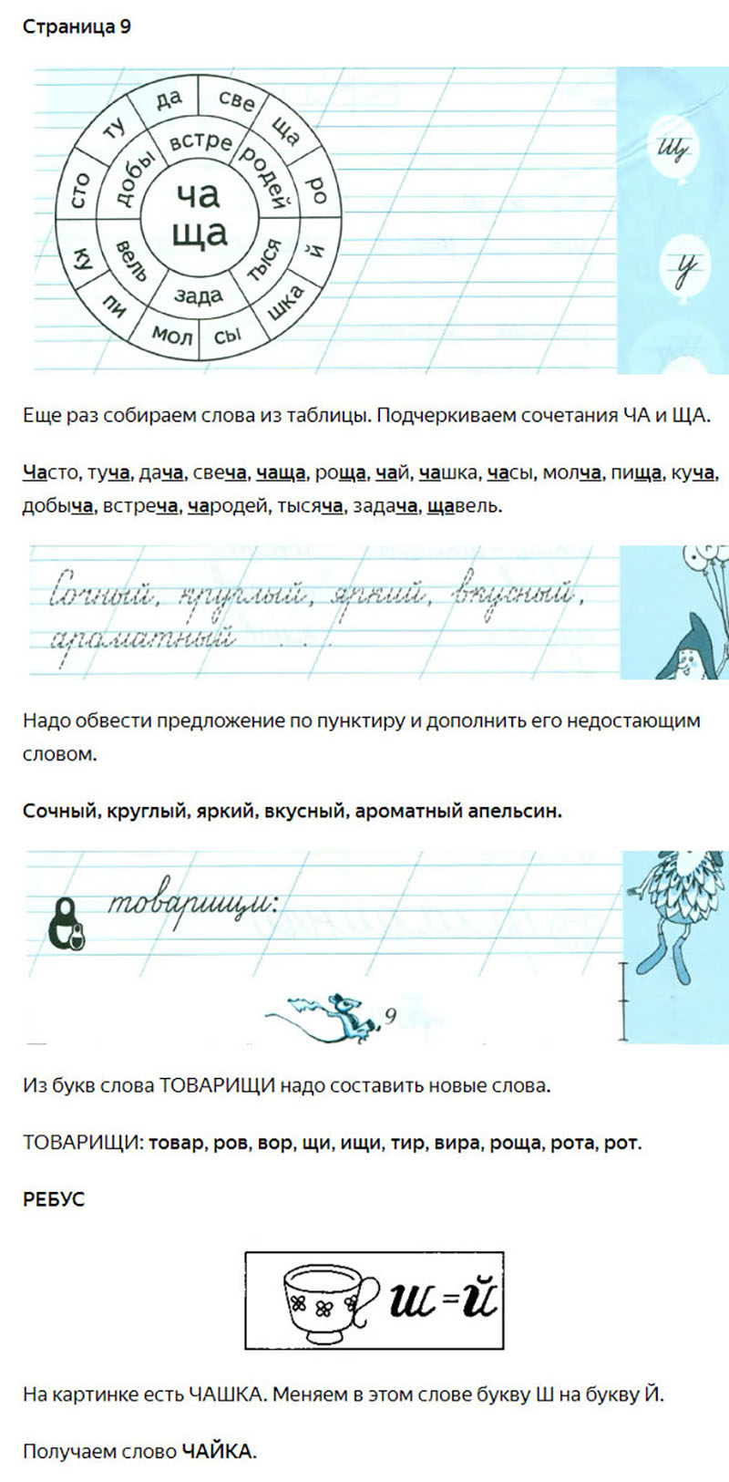 Подробные ответы к заданиям на 9 странице 4 части чудо-прописей автора В.А. Илюхина для учащихся 1 класса.