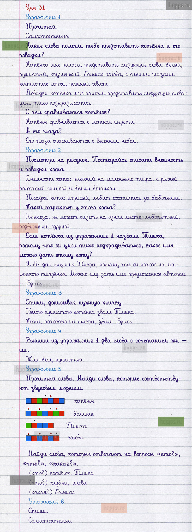 Подробные ответы к заданиям 31 урока учебника по русскому языку авторов С.В. Иванов, А.О. Евдокимова, М.И. Кузнецова, для учащихся 1 класса.