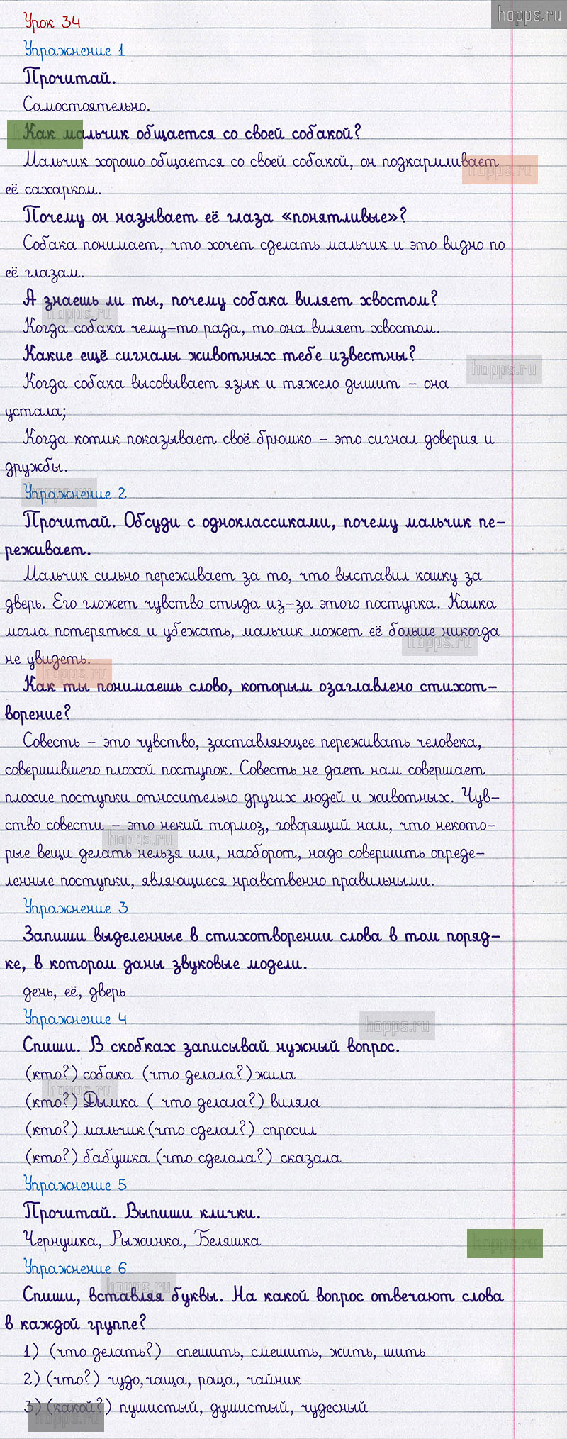 Подробные ответы к заданиям 34 урока учебника по русскому языку авторов С.В. Иванов, А.О. Евдокимова, М.И. Кузнецова, для учащихся 1 класса.