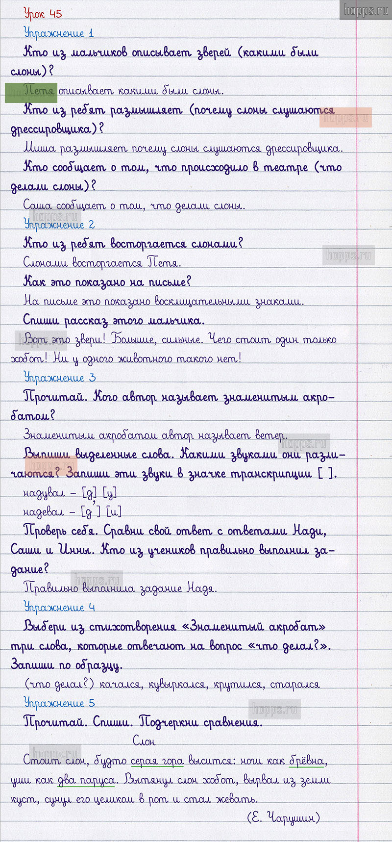 Подробные ответы к заданиям 45 урока учебника по русскому языку авторов С.В. Иванов, А.О. Евдокимова, М.И. Кузнецова, для учащихся 1 класса.