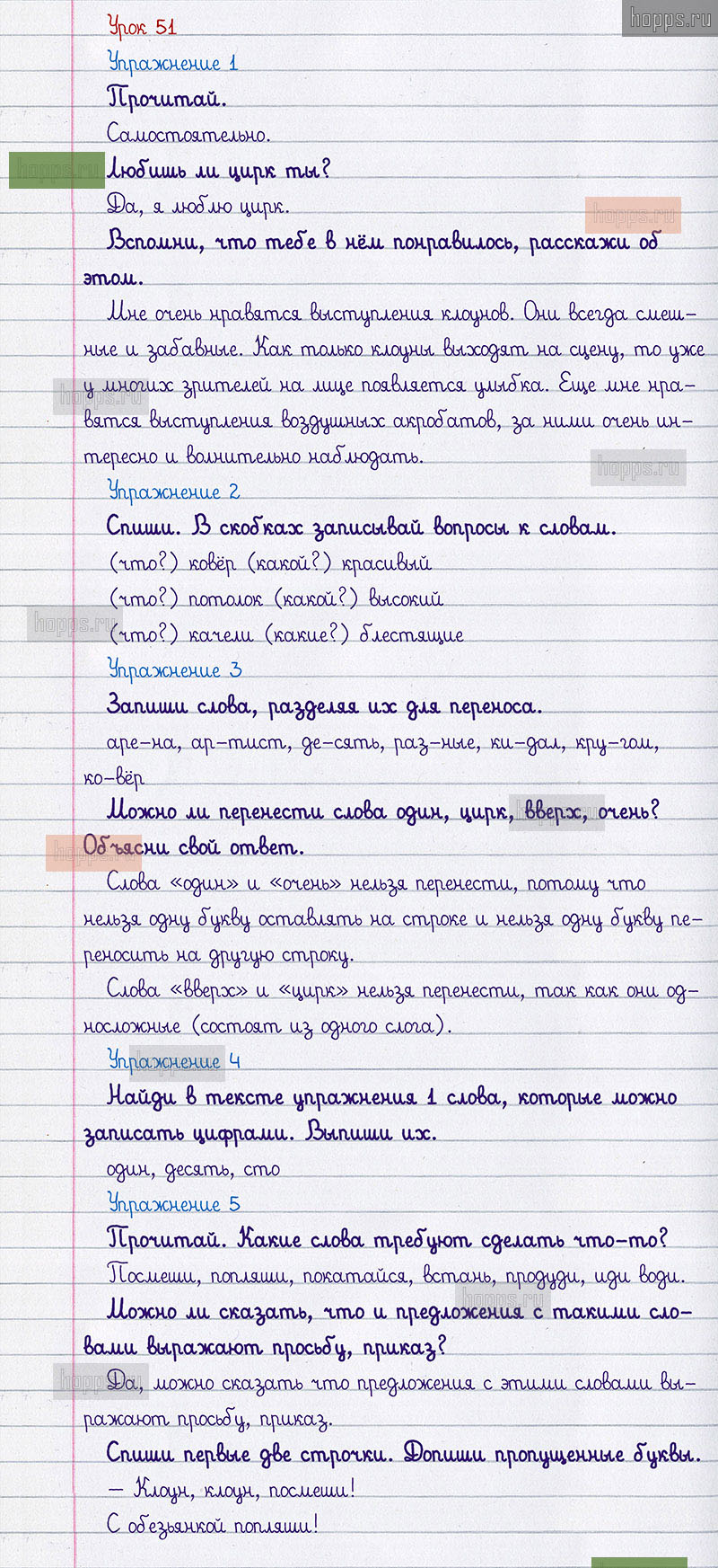 Подробные ответы к заданиям 51 урока учебника по русскому языку авторов С.В. Иванов, А.О. Евдокимова, М.И. Кузнецова, для учащихся 1 класса.