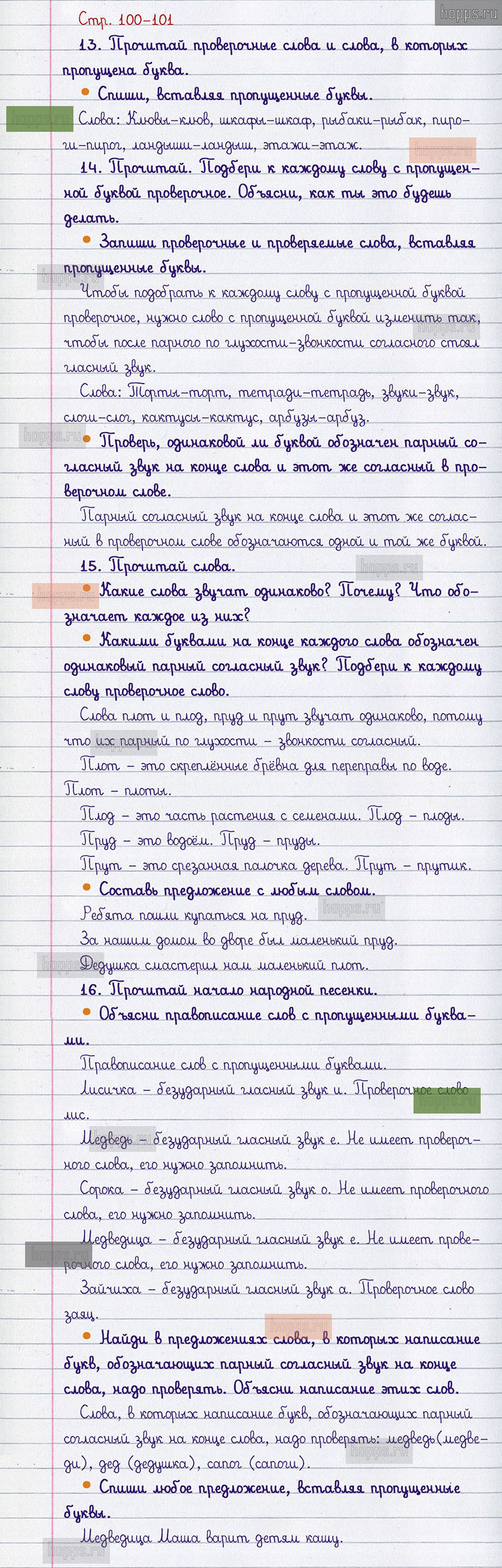 Подробные ответы к вопросам и заданиям, расположенным на 100-101 странице учебника по русскому языку авторов В.П. Канакина, В.Г. Горецкий для учащихся 1 класса.