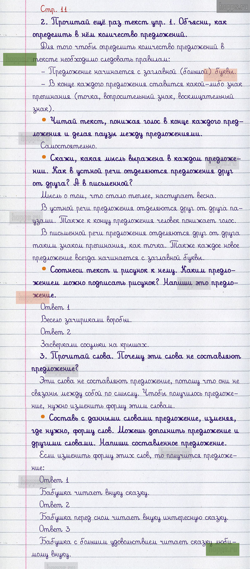 Подробные ответы к вопросам и заданиям, расположенным на 11 странице учебника по русскому языку авторов В.П. Канакина, В.Г. Горецкий для учащихся 1 класса.