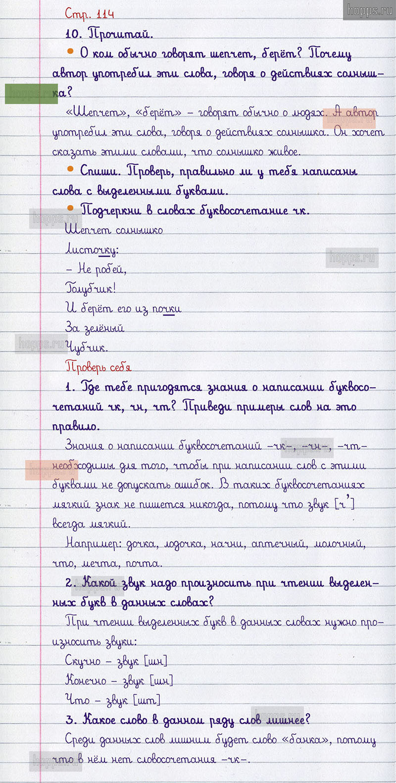 Подробные ответы к вопросам и заданиям, расположенным на 114 странице учебника по русскому языку авторов В.П. Канакина, В.Г. Горецкий для учащихся 1 класса.