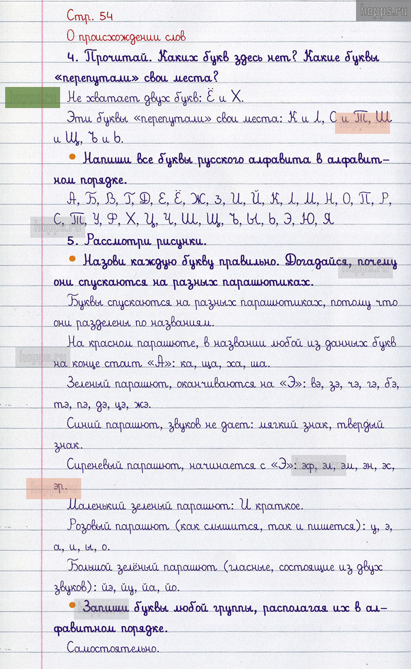 Подробные ответы к вопросам и заданиям, расположенным на 54 странице учебника по русскому языку авторов В.П. Канакина, В.Г. Горецкий для учащихся 1 класса.