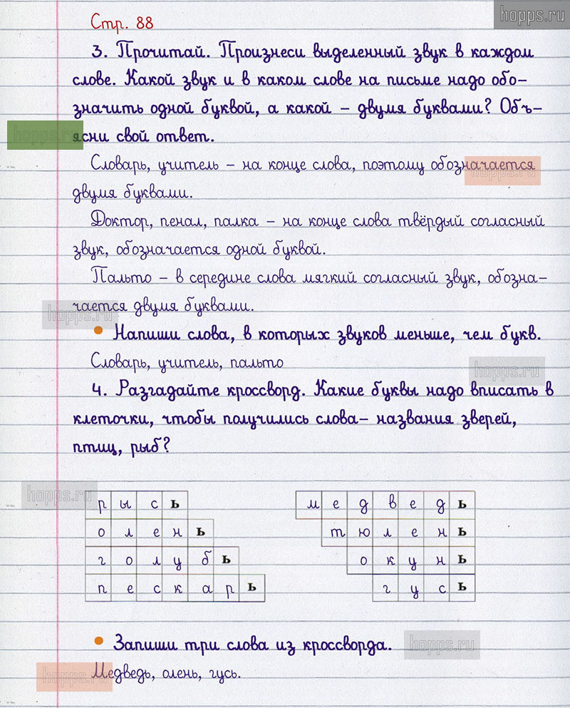 Подробные ответы к вопросам и заданиям, расположенным на 88 странице учебника по русскому языку авторов В.П. Канакина, В.Г. Горецкий для учащихся 1 класса.