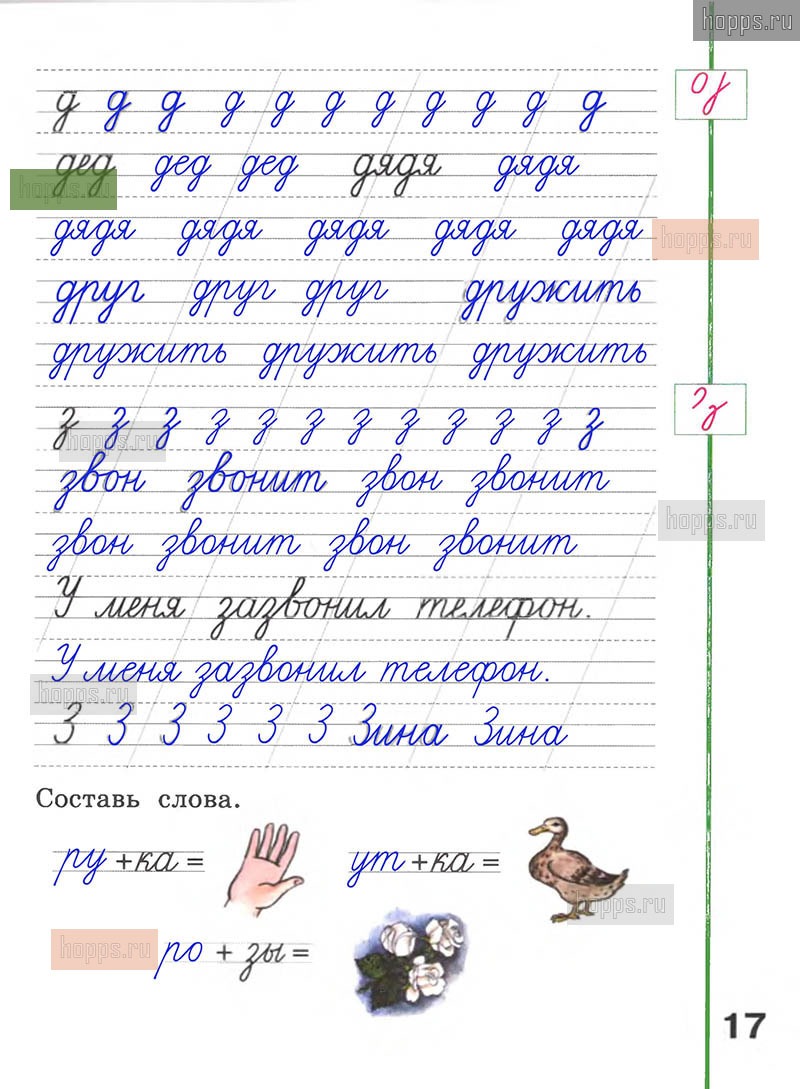 Подробные ответы к заданиям, расположенным на 17 странице рабочей тетради по русскому языку авторов Л.Ф. Климанова, А.В. Абрамов для учащихся 1 класса.
