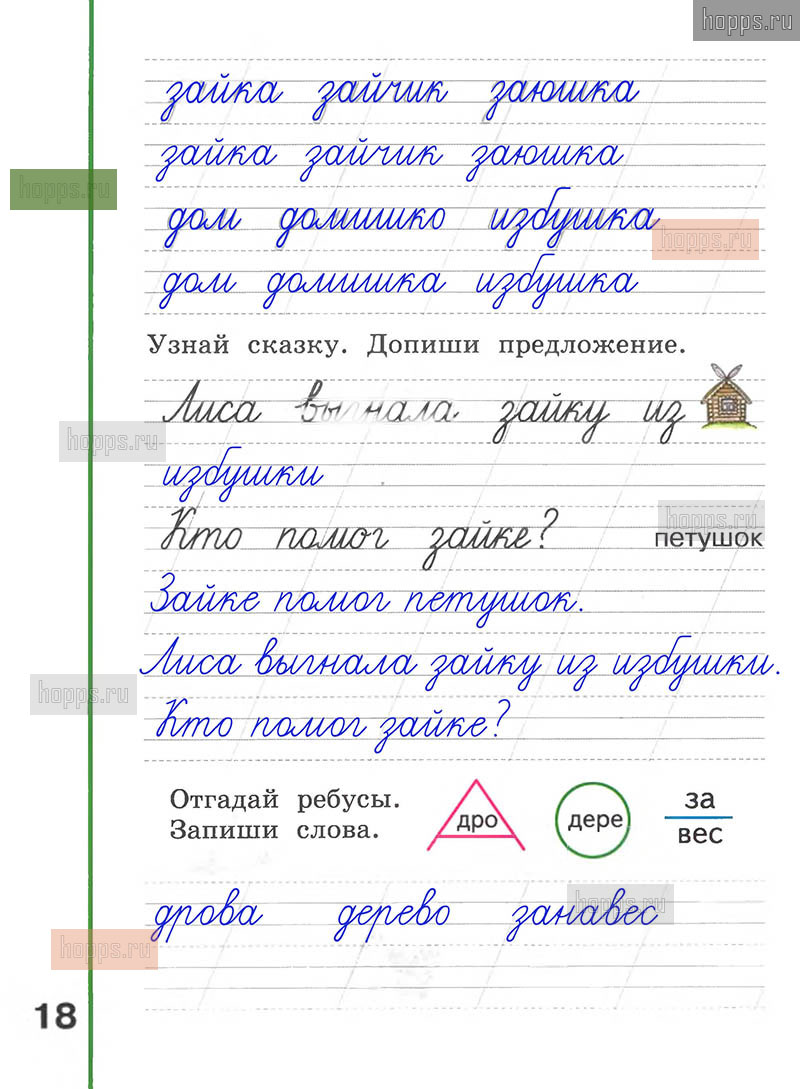 Подробные ответы к заданиям, расположенным на 18 странице рабочей тетради по русскому языку авторов Л.Ф. Климанова, А.В. Абрамов для учащихся 1 класса.